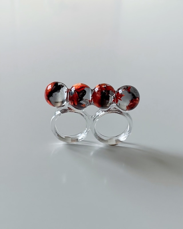 必ず最後までお読みください。 こちらの商品は受注製作となります。 オーダー頂いてから1週間ほどお時間を頂きますので 宜しくお願いします。 購入時の際には必ず備考欄にご希望の 中指、薬指のリングのサイズをご記載下さいませ。 最大で25号までなら製作可能です。 球体が連なった個性的なリング。 手元の主役にもなるデザインです。 もちろん1つでも存在感があるデザインですが シルバーやゴールドのリングにも 合わせやすいです。 製作段階で多少気泡が入ってしう場合がございます。 雰囲気が出るので好みがありますが ハンドメイド作品なので 完璧なものを求められる方はご遠慮下さいませ。 ******************* size:4.8cm 1つ1つ手作業で形を整えておりますので、同じデザインでも微妙に違う仕上がりとなります。 手仕事なので既製品とは違い繊細な作りとなってますので、乱暴に扱うと破損する怖れもございます。 写真とイメージが違ったと言う理由での返品は受け付けておりません。 ご購入の前に作品の内容やプロフィールを確認していただけるとありがたいです。 定形外郵便での発送の場合、ハガキサイズのBOXで梱包しております。