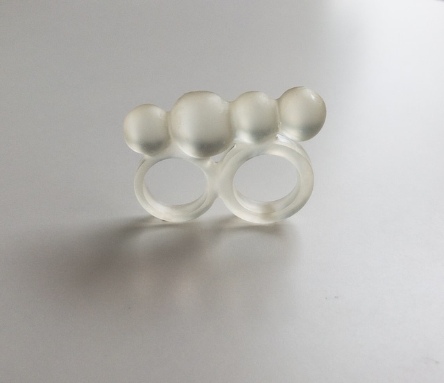 必ず最後までお読みください。 こちらの商品は受注製作となります。 オーダー頂いてから1週間ほどお時間を頂きますので 宜しくお願いします。 購入時の際には必ず備考欄にご希望の 中指、薬指のリングのサイズをご記載下さいませ。 最大で25号までなら製作可能です。 球体が連なった個性的なリング。 手元の主役にもなるデザインですが 無色なので色んなコーディネートに合わせやすいです。 もちろん1つでも存在感があるデザインですが シルバーやゴールドのリングにも 合わせやすいです。 製作段階で多少気泡が入ってしう場合がございます。 雰囲気が出るので好みがありますが ハンドメイド作品なので 完璧なものを求められる方はご遠慮下さいませ。 ******************* size:4.8cm 1つ1つ手作業で形を整えておりますので、同じデザインでも微妙に違う仕上がりとなります。 手仕事なので既製品とは違い繊細な作りとなってますので、乱暴に扱うと破損する怖れもございます。 写真とイメージが違ったと言う理由での返品は受け付けておりません。 ご購入の前に作品の内容やプロフィールを確認していただけるとありがたいです。 定形外郵便での発送の場合、ハガキサイズのBOXで梱包しております。