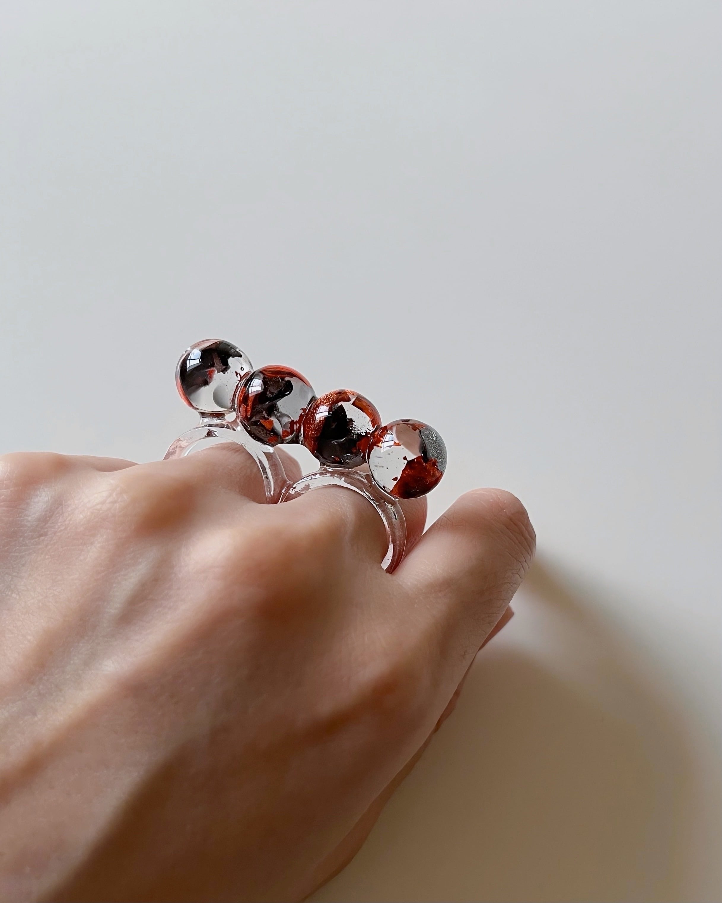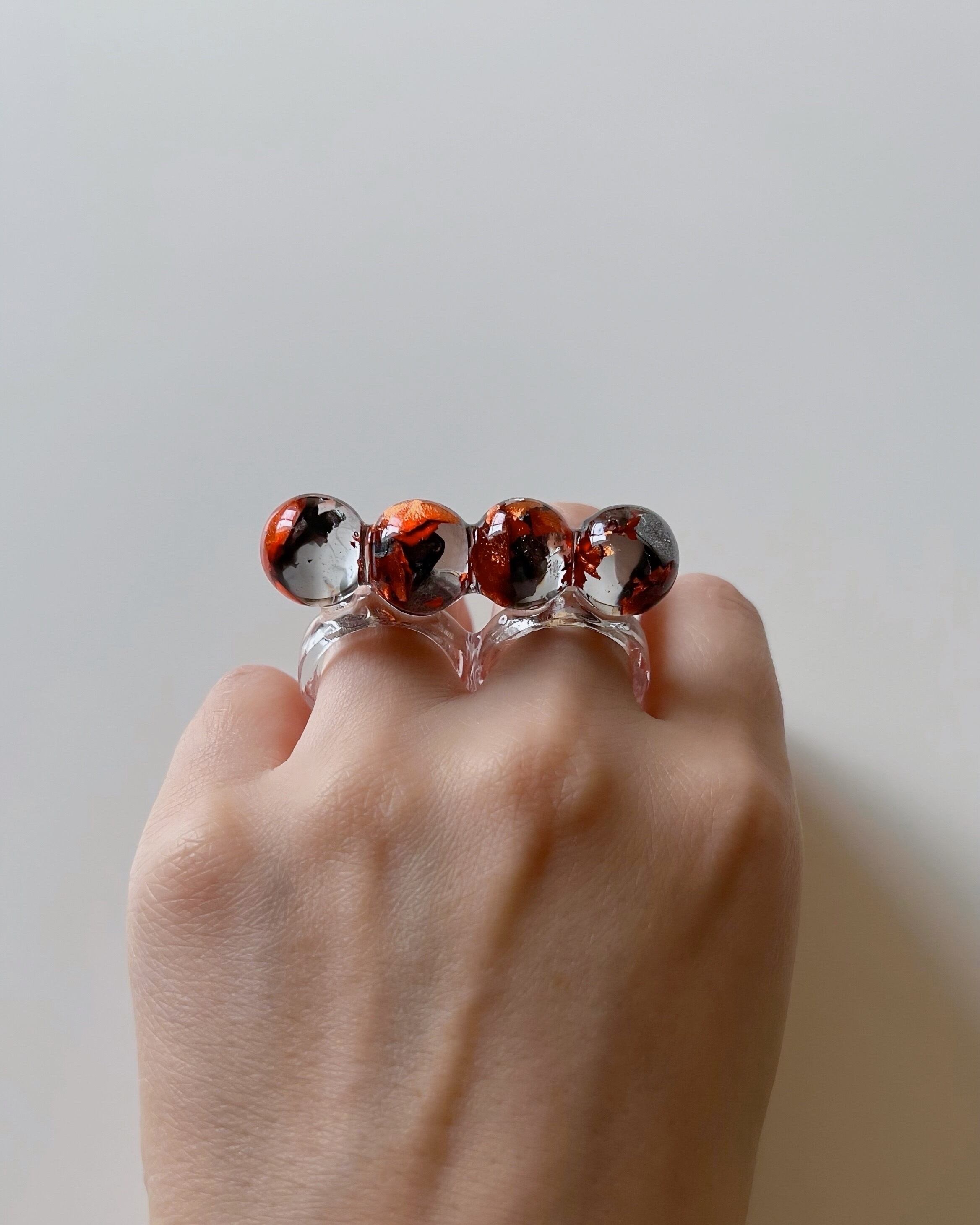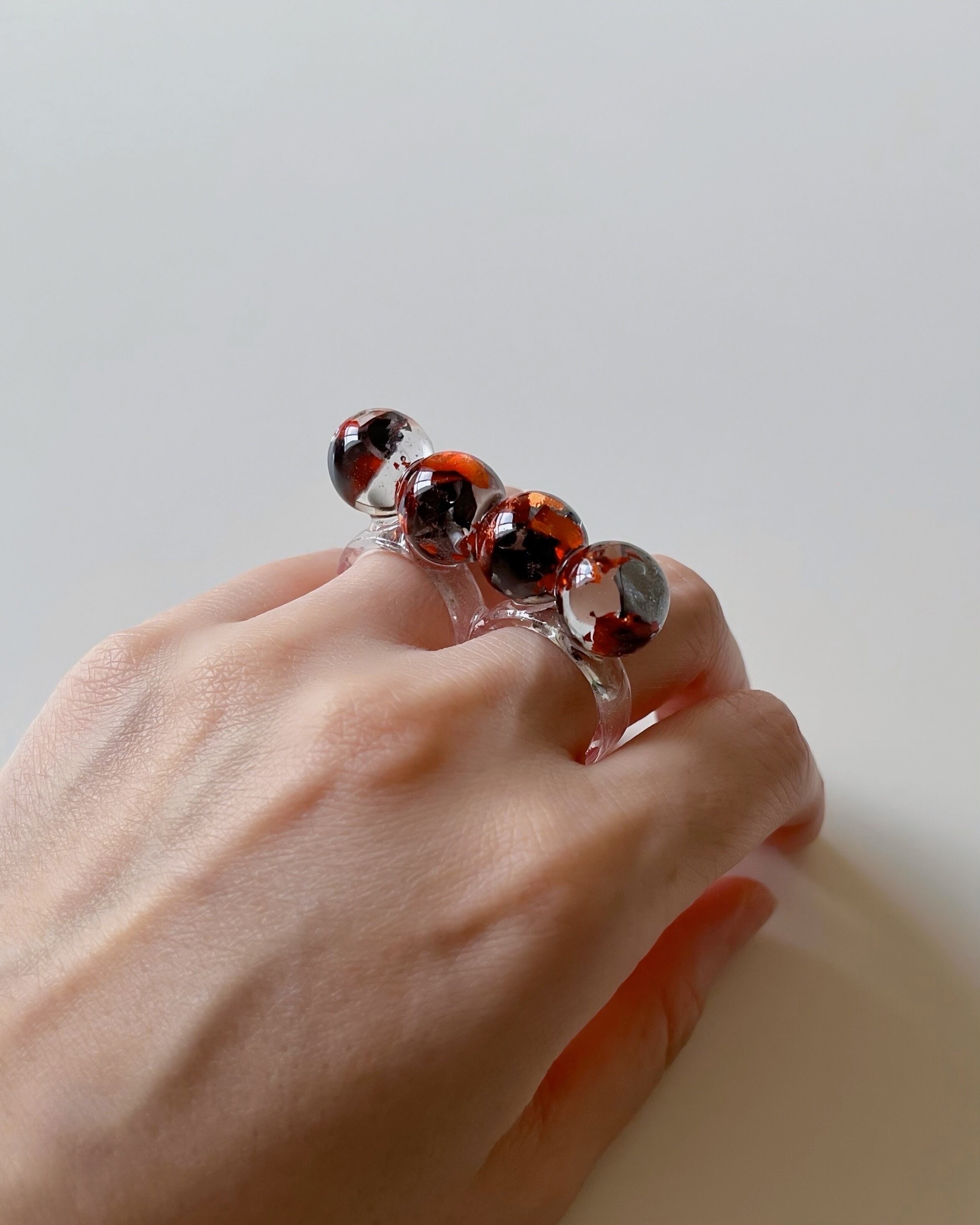 球体が連なった個性的なリング。