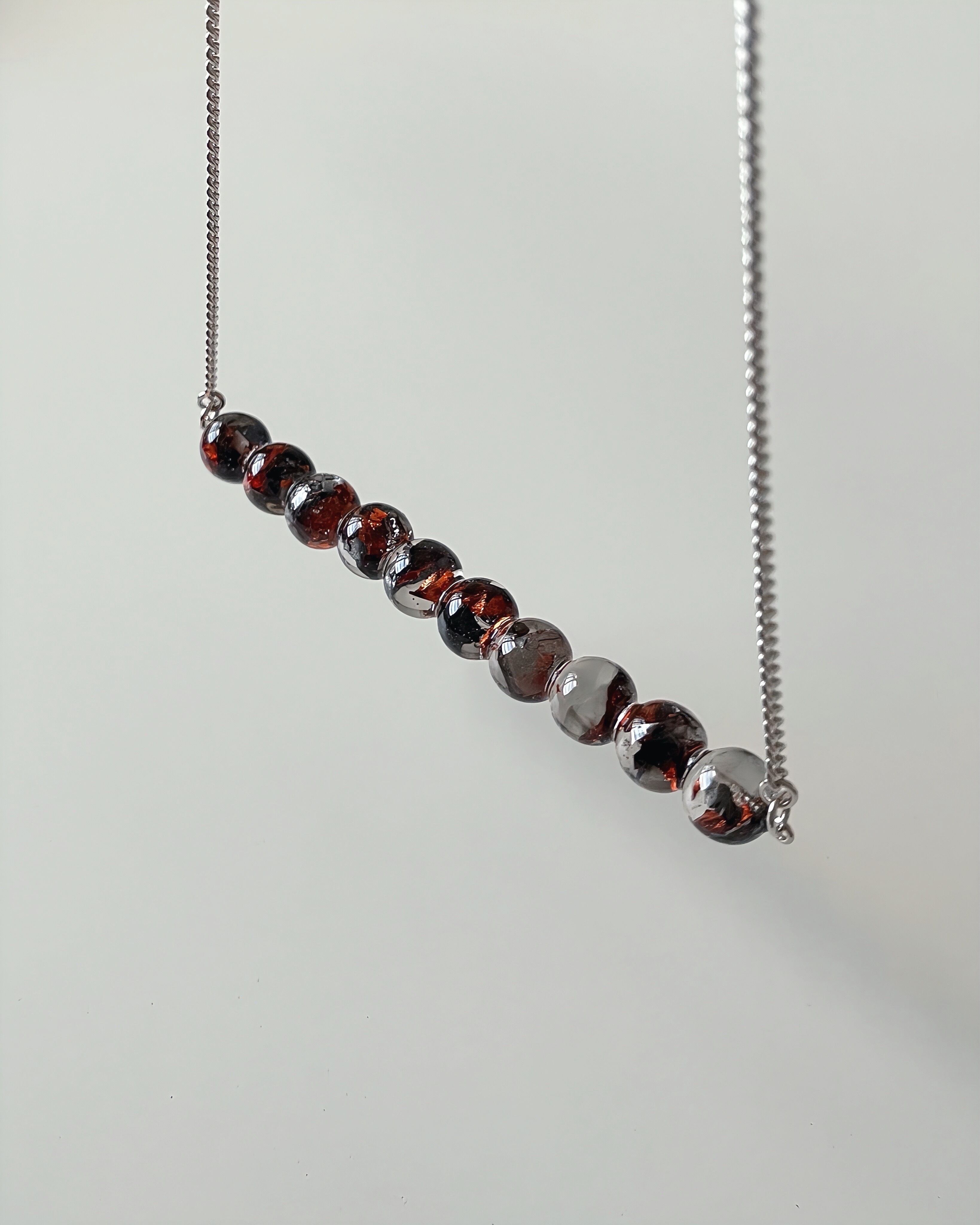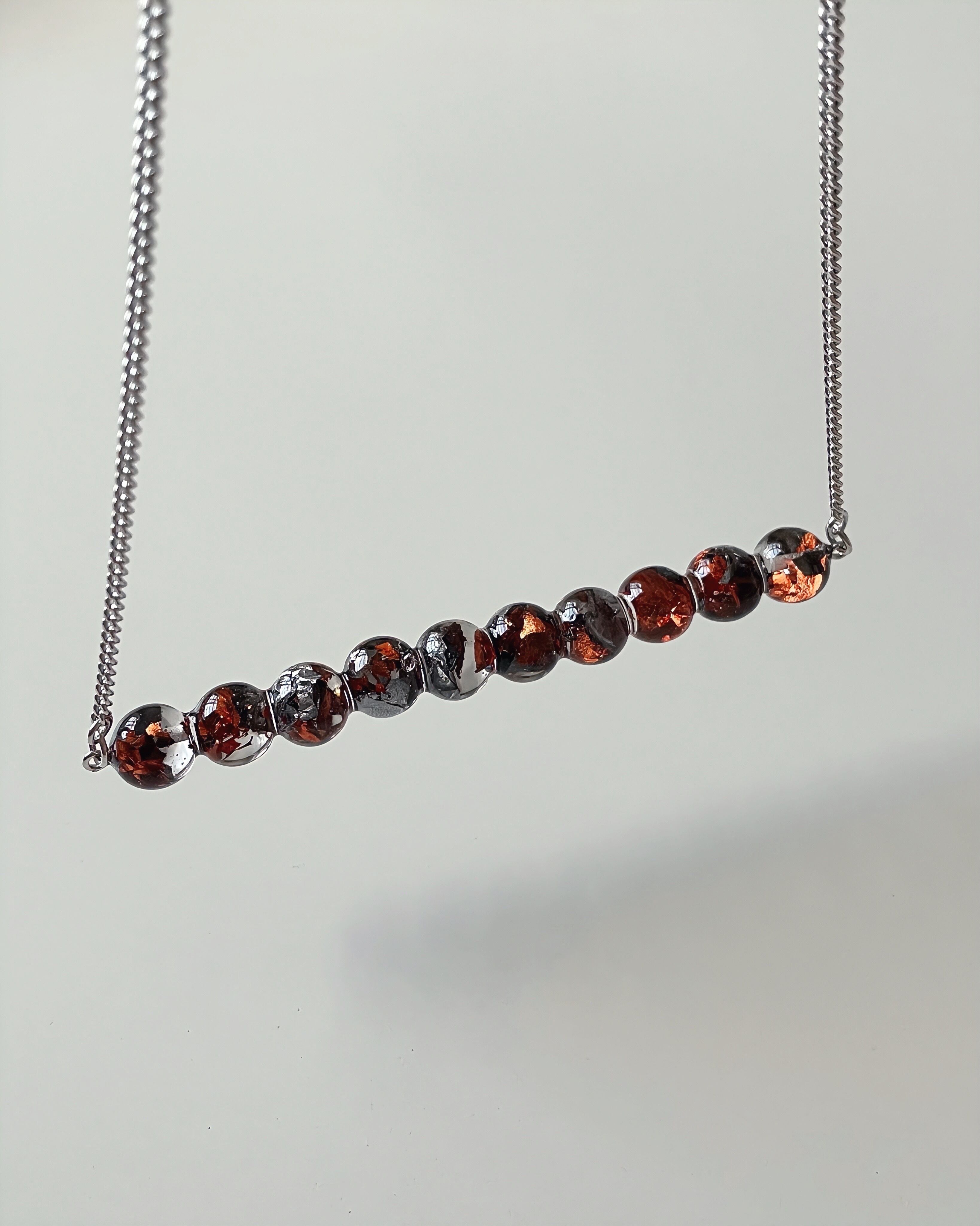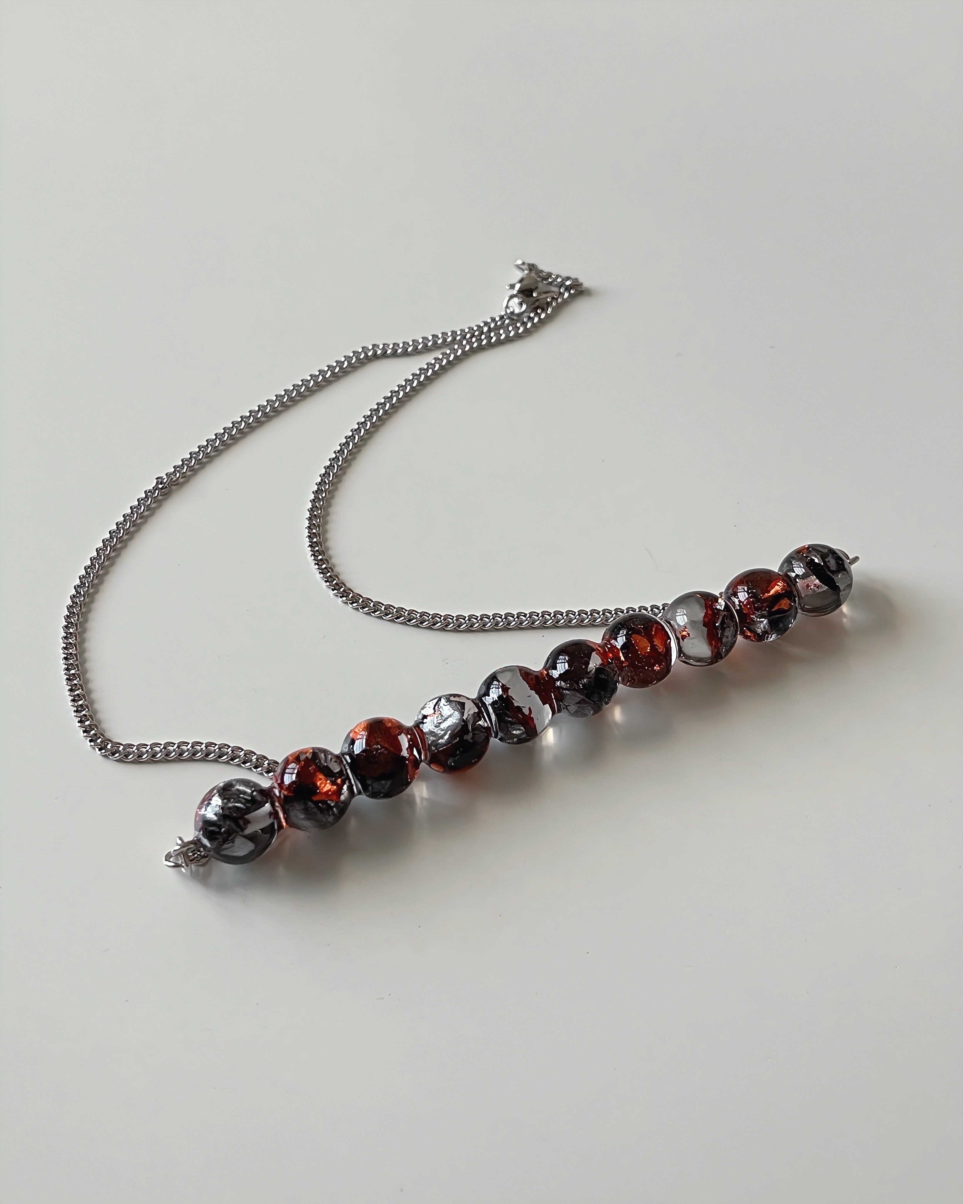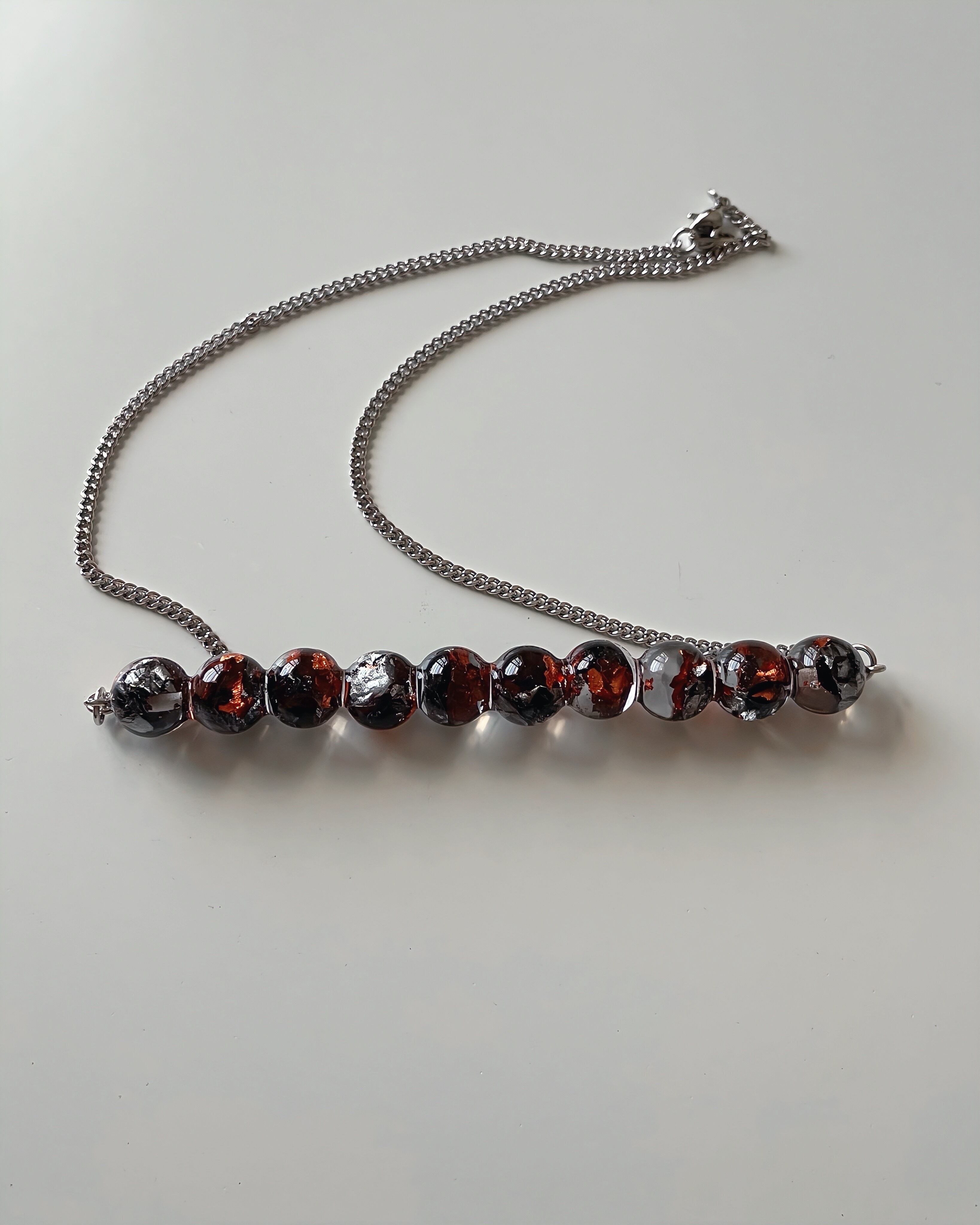 sphere necklace【orange×silver】箔入り/silver chain