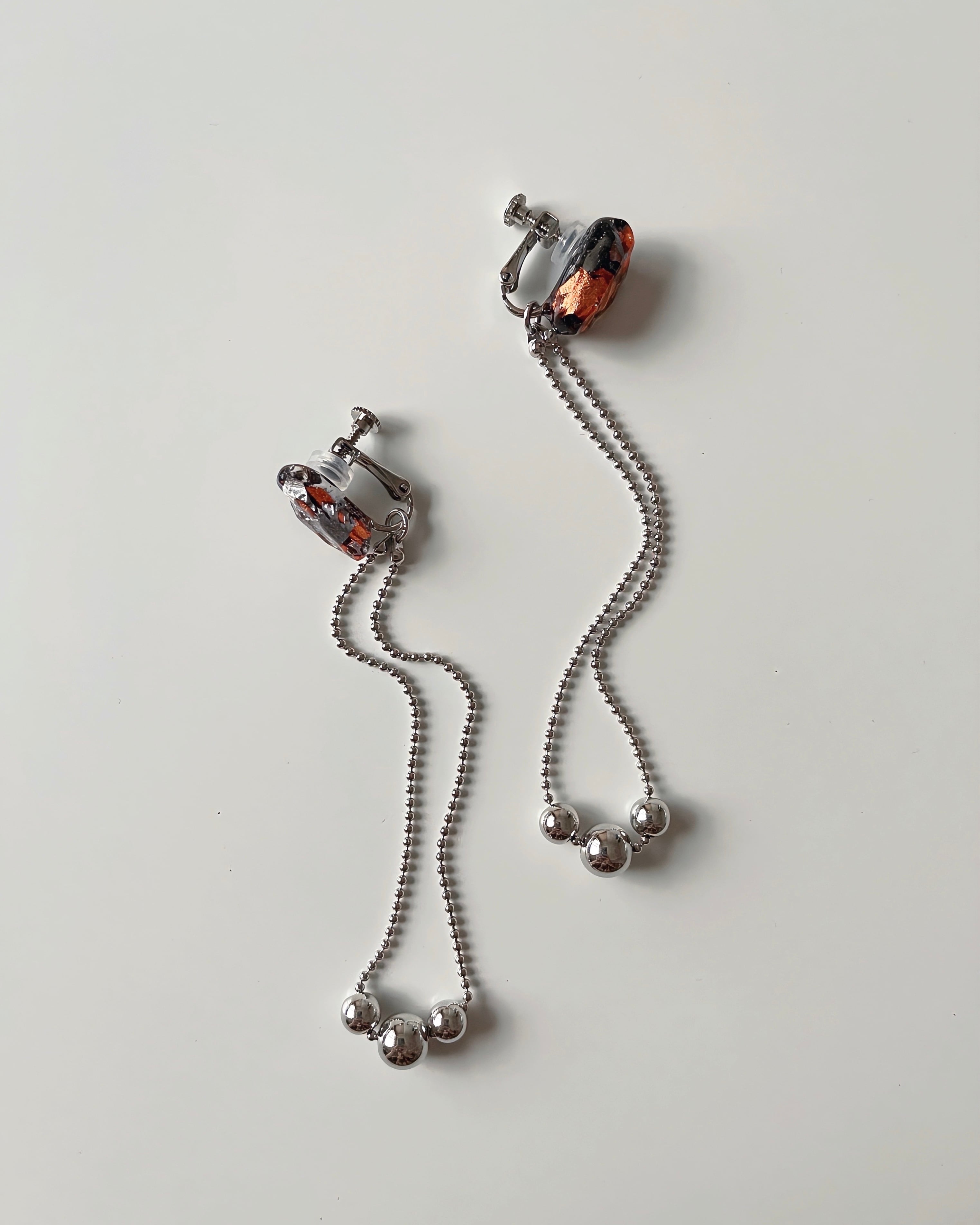 Fragment chain earring【orange× silver】