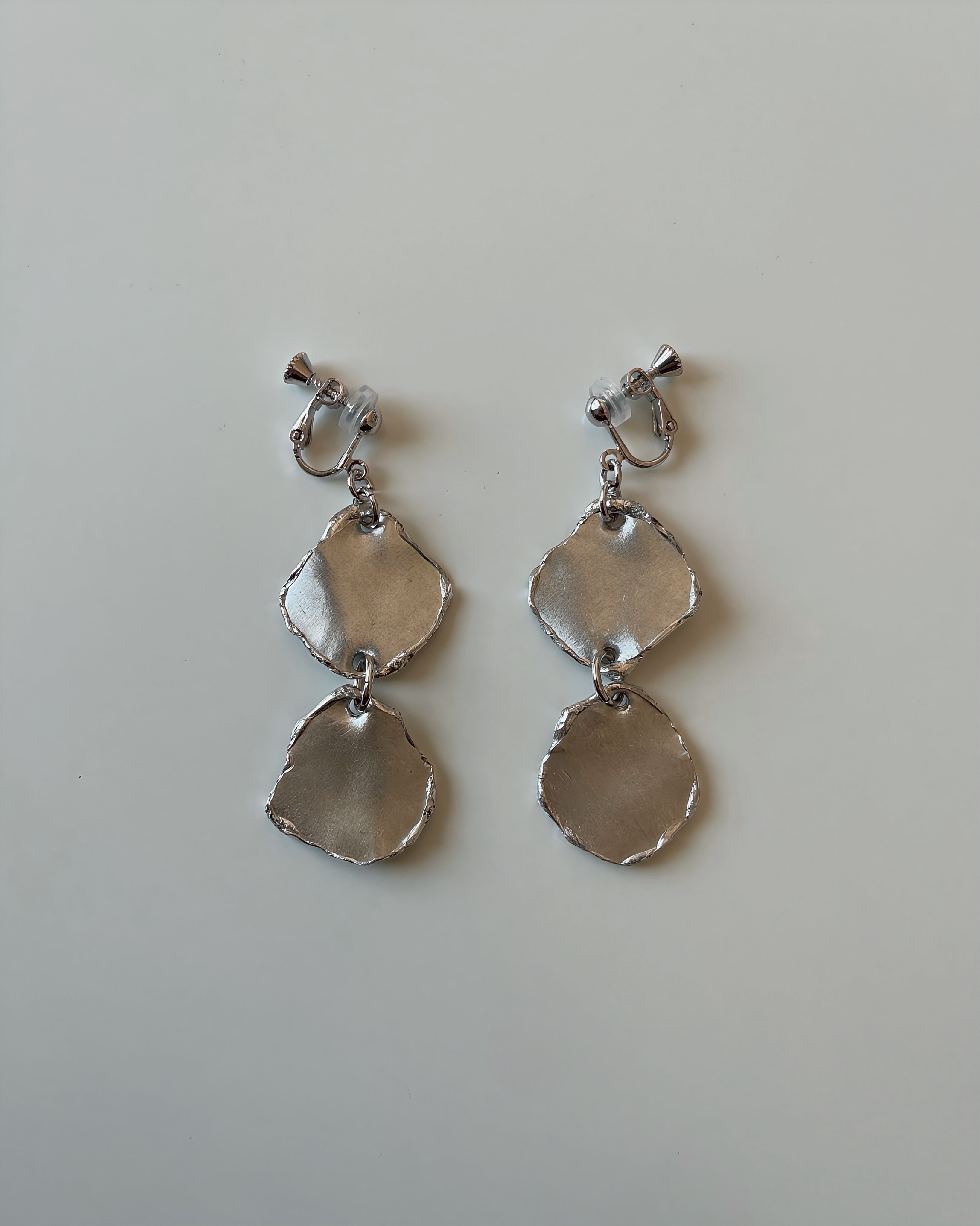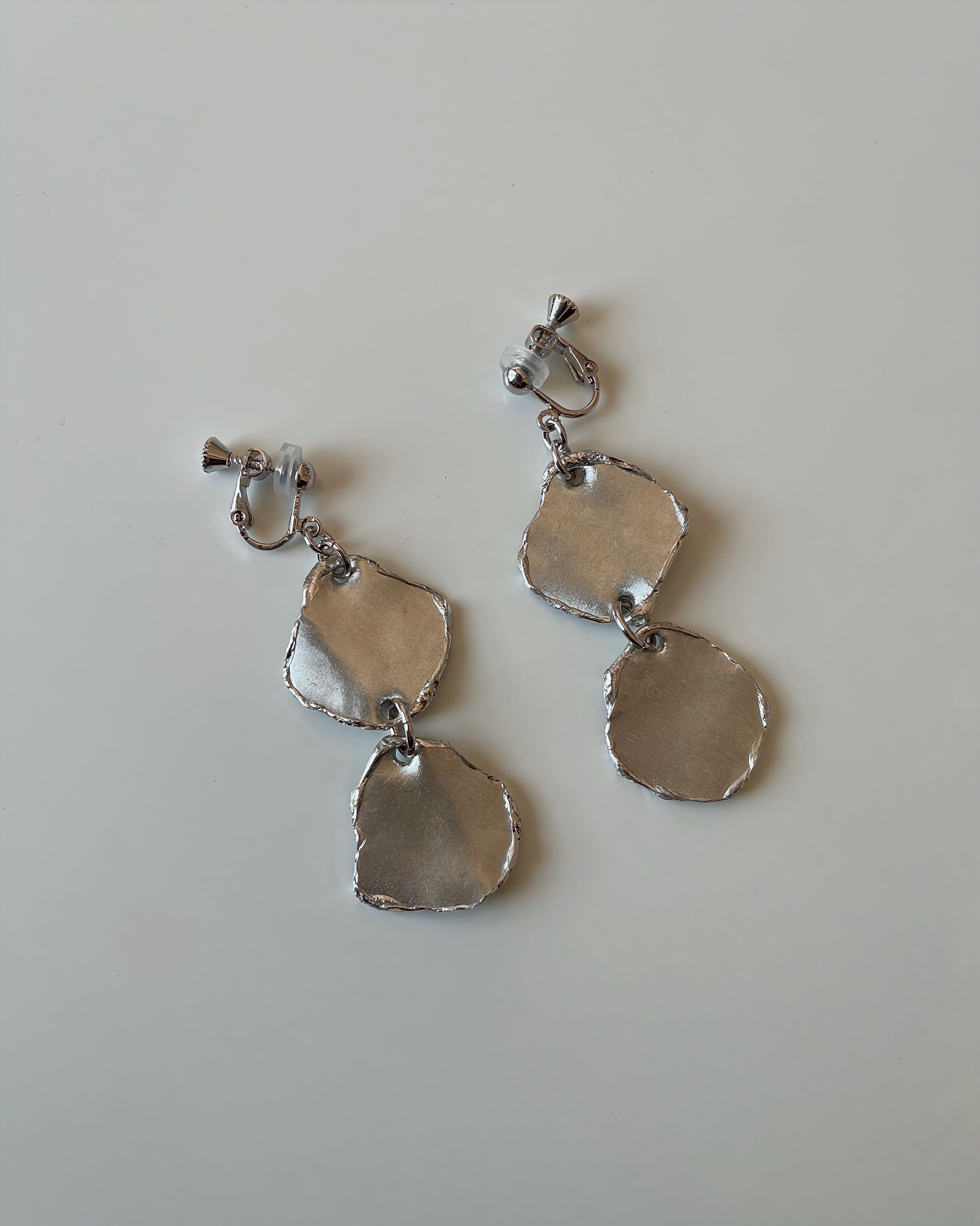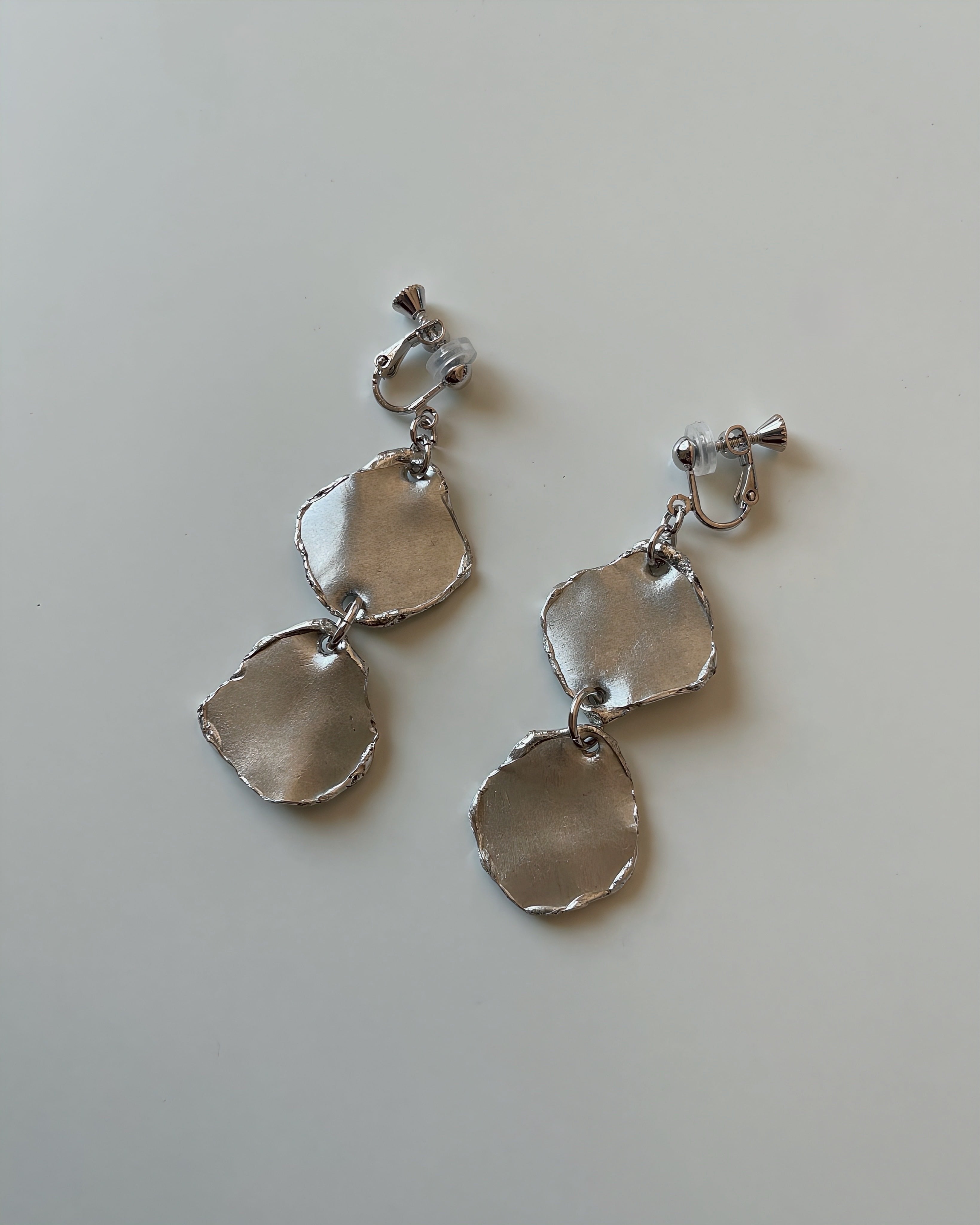 静かにゆらめく錫の表情を重ねたイヤリング 「錫揺(すずゆら)」。