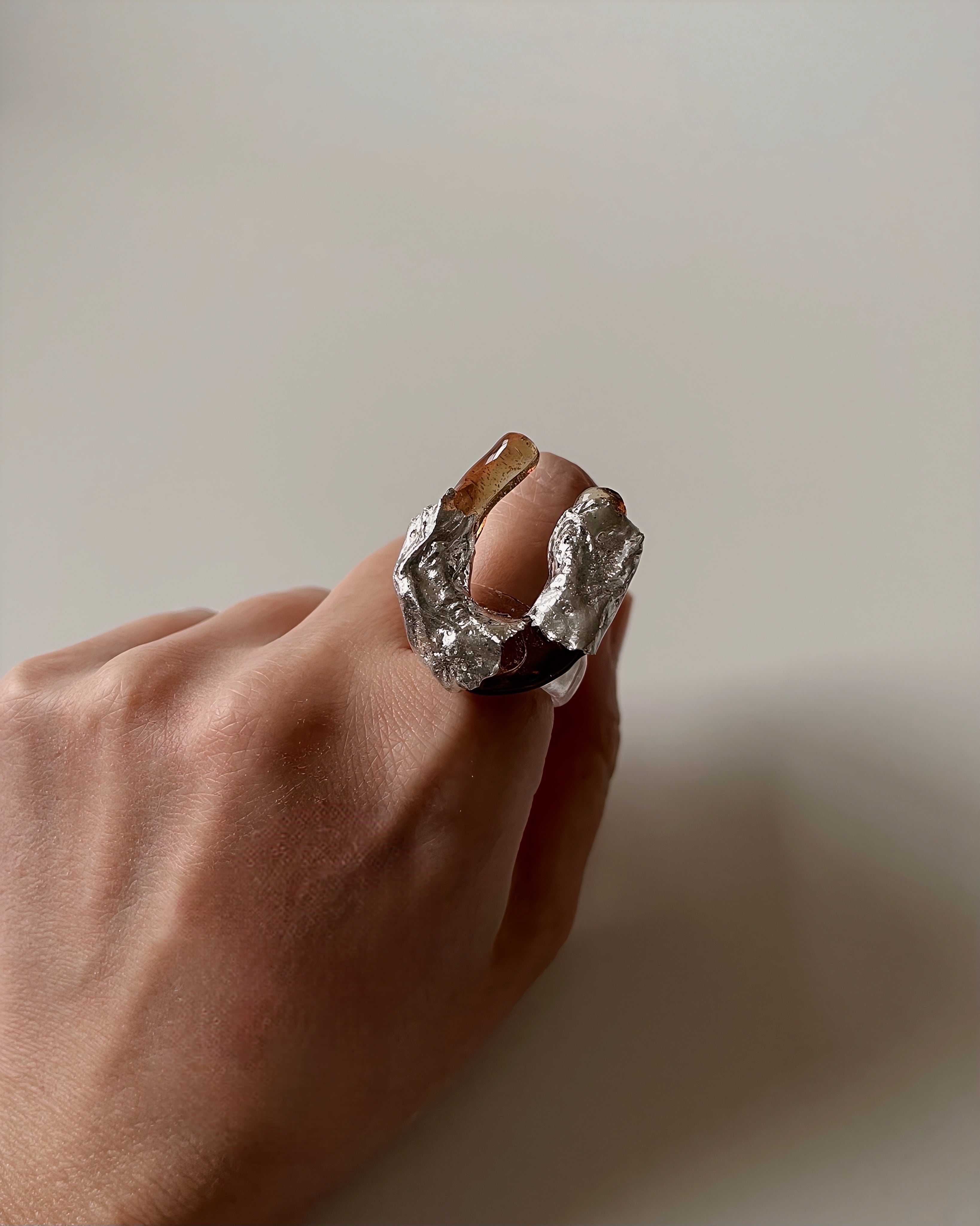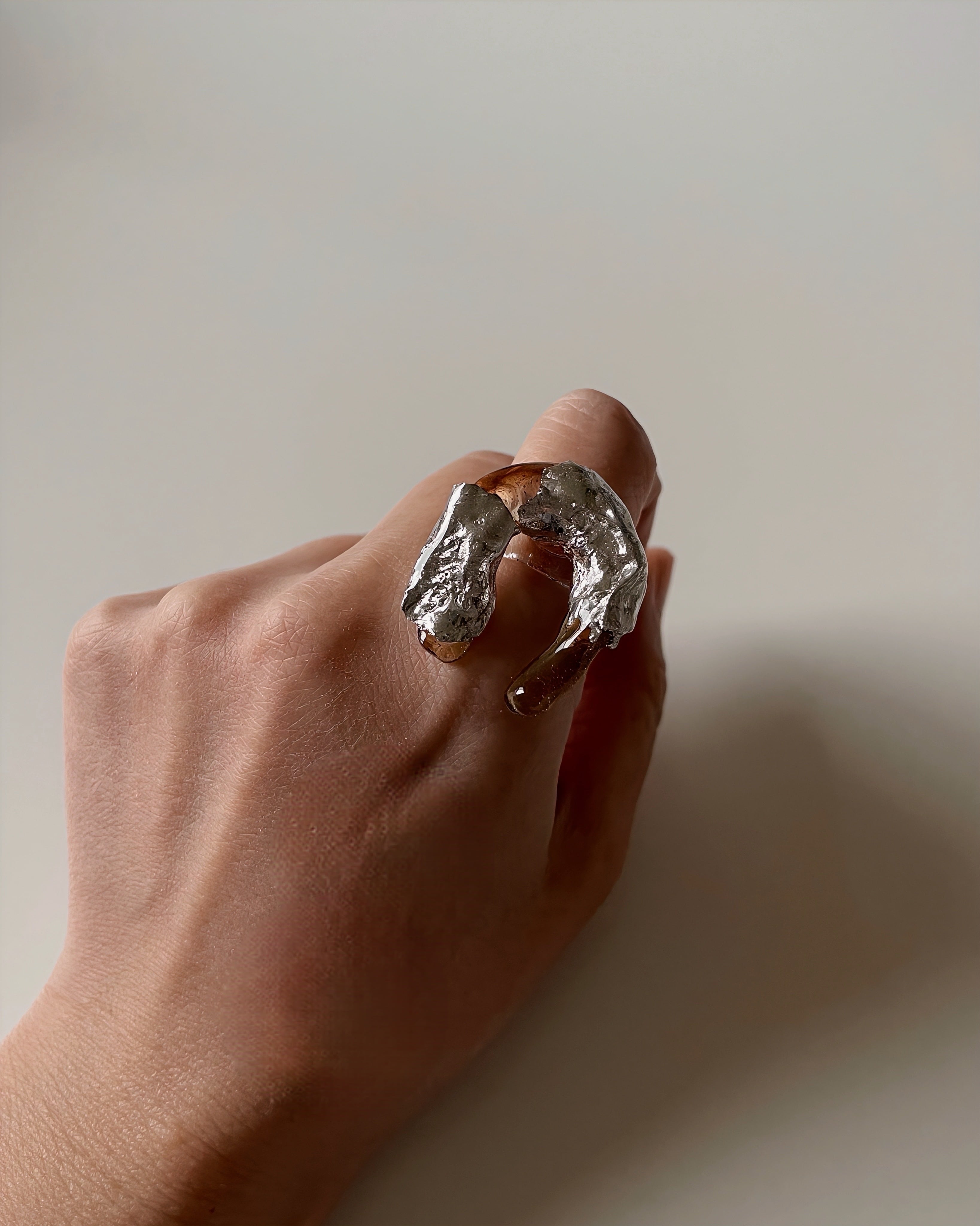 幸運を呼ぶ馬蹄モチーフで、お守りのように身につけられるアートリングです。