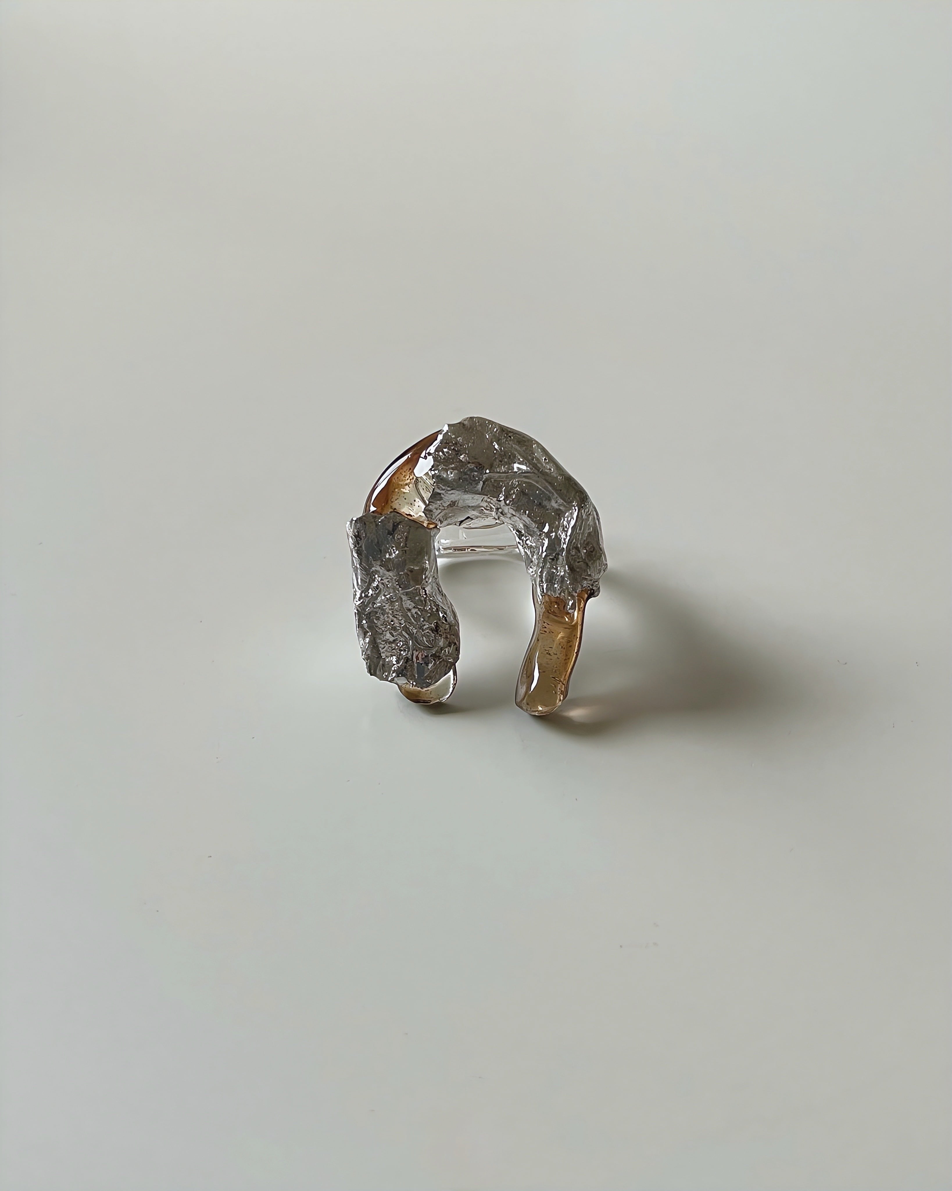 馬蹄をモチーフにした大胆なフォルムは、見る角度によって表情が変わる一点物のデザイン。
