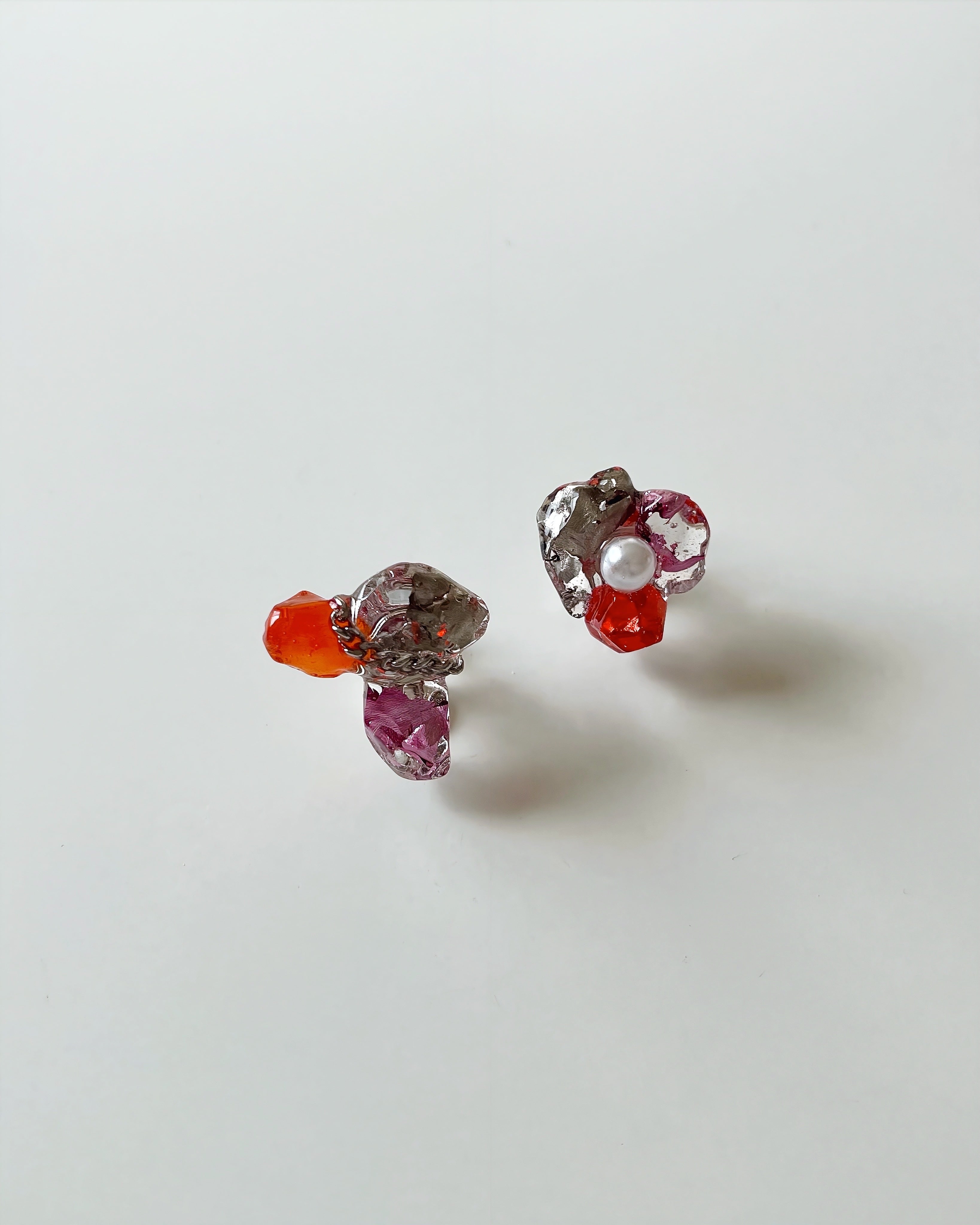 イヤリング金具は金属アレルギー対応のサージカルステンレスを使用しておりますが個人差がございます。