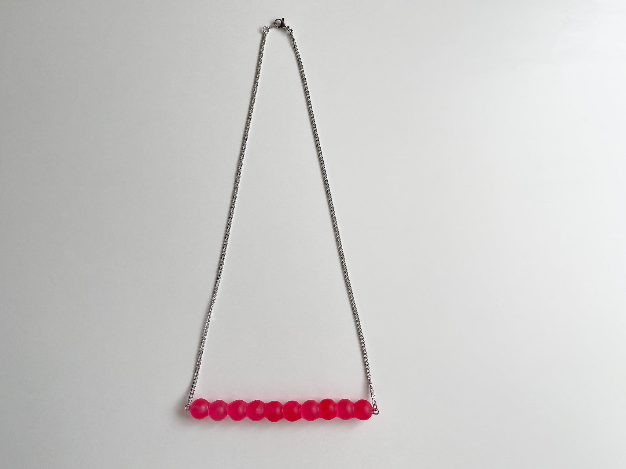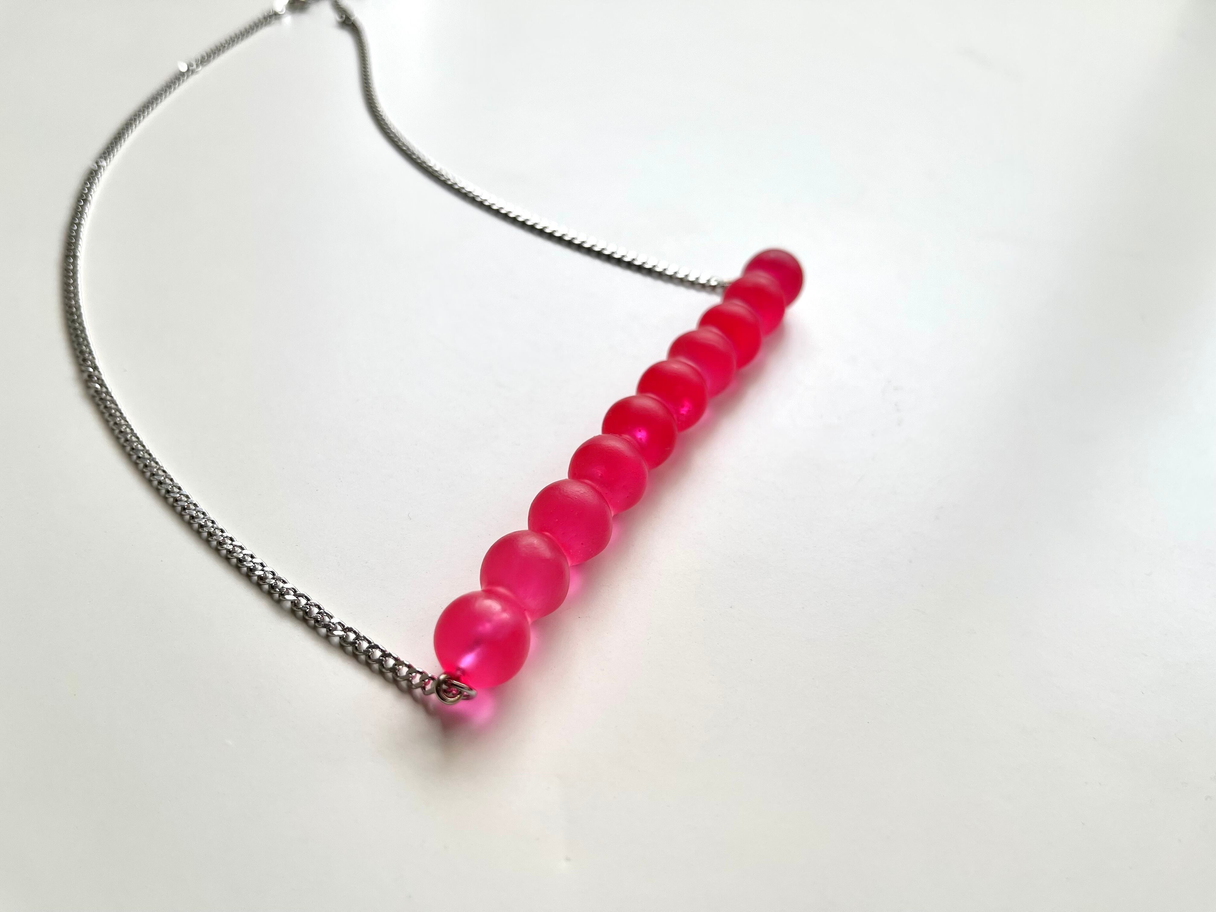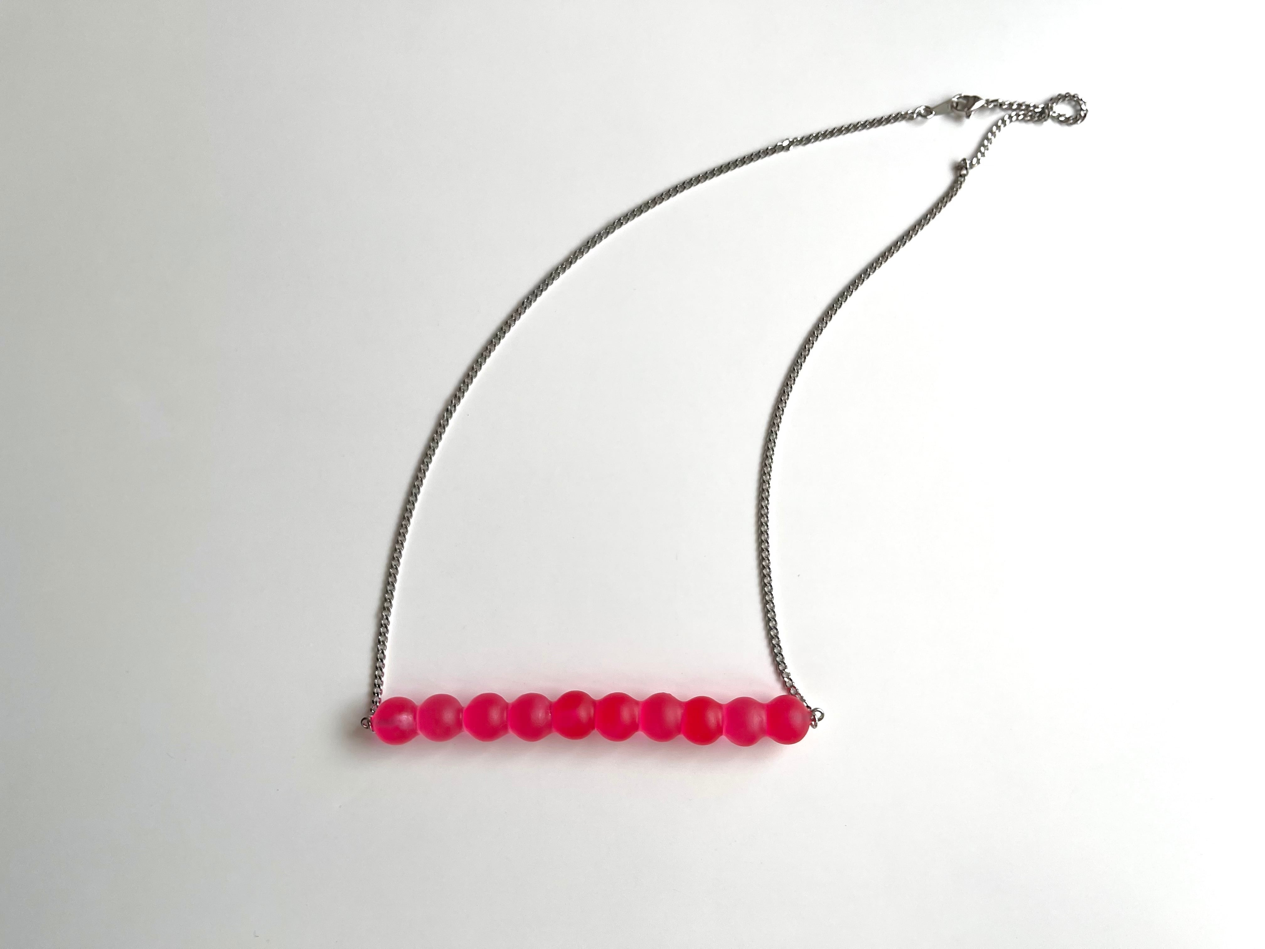 ビビットなピンクなので存在感のあるネックレスです。