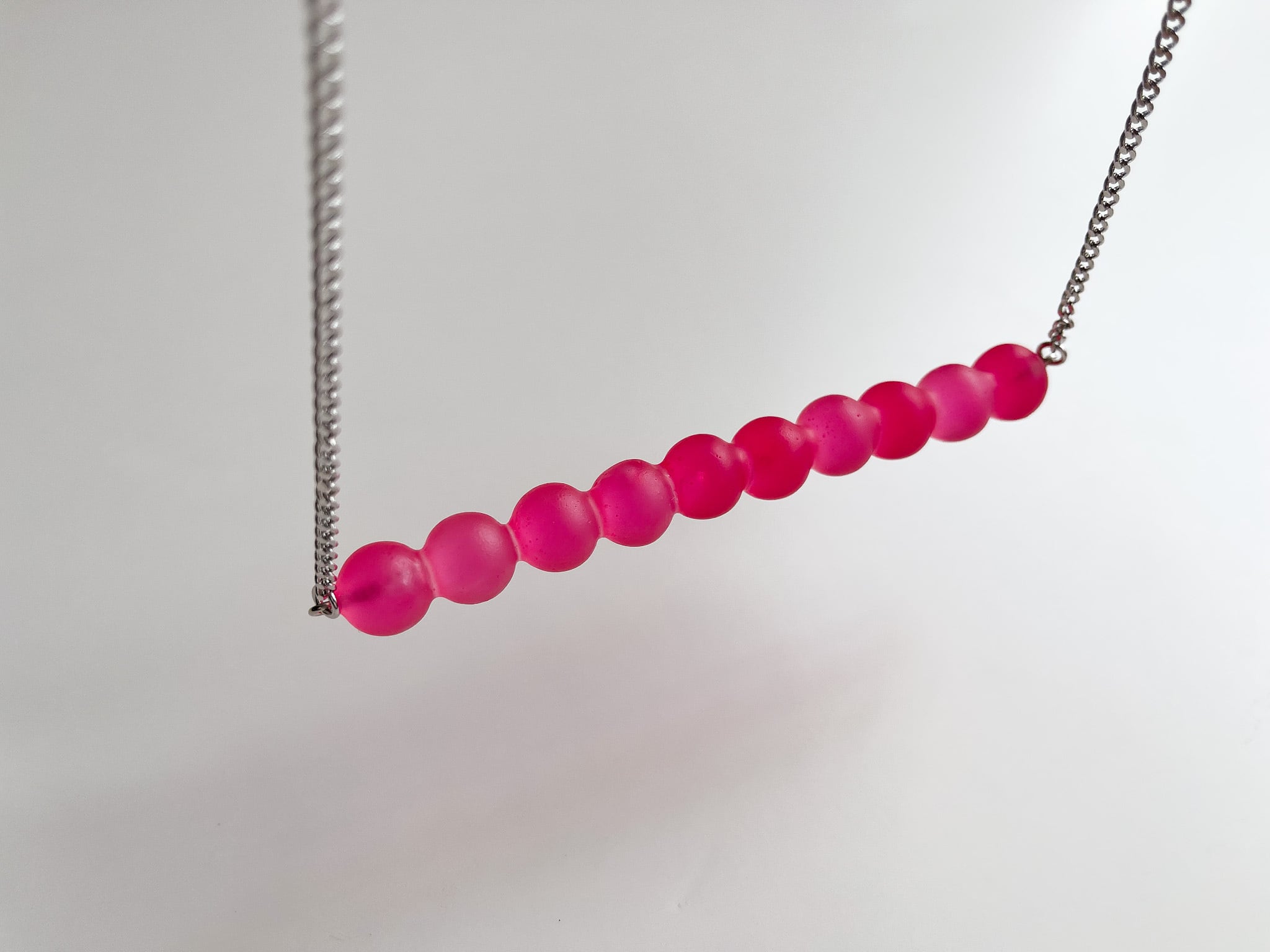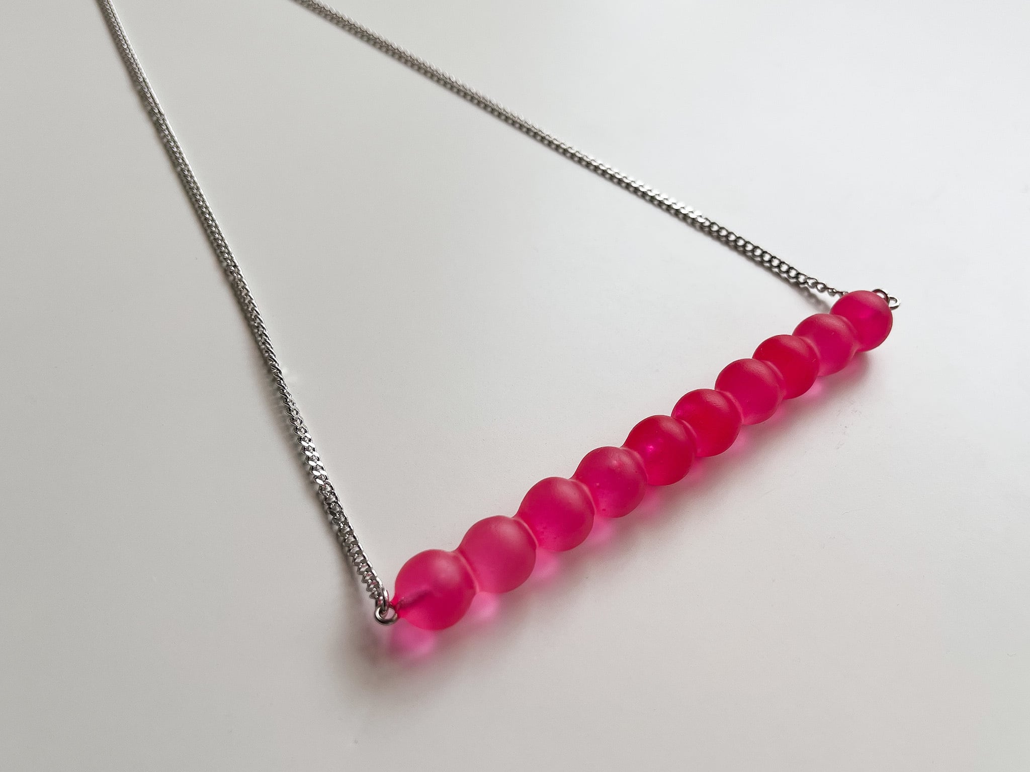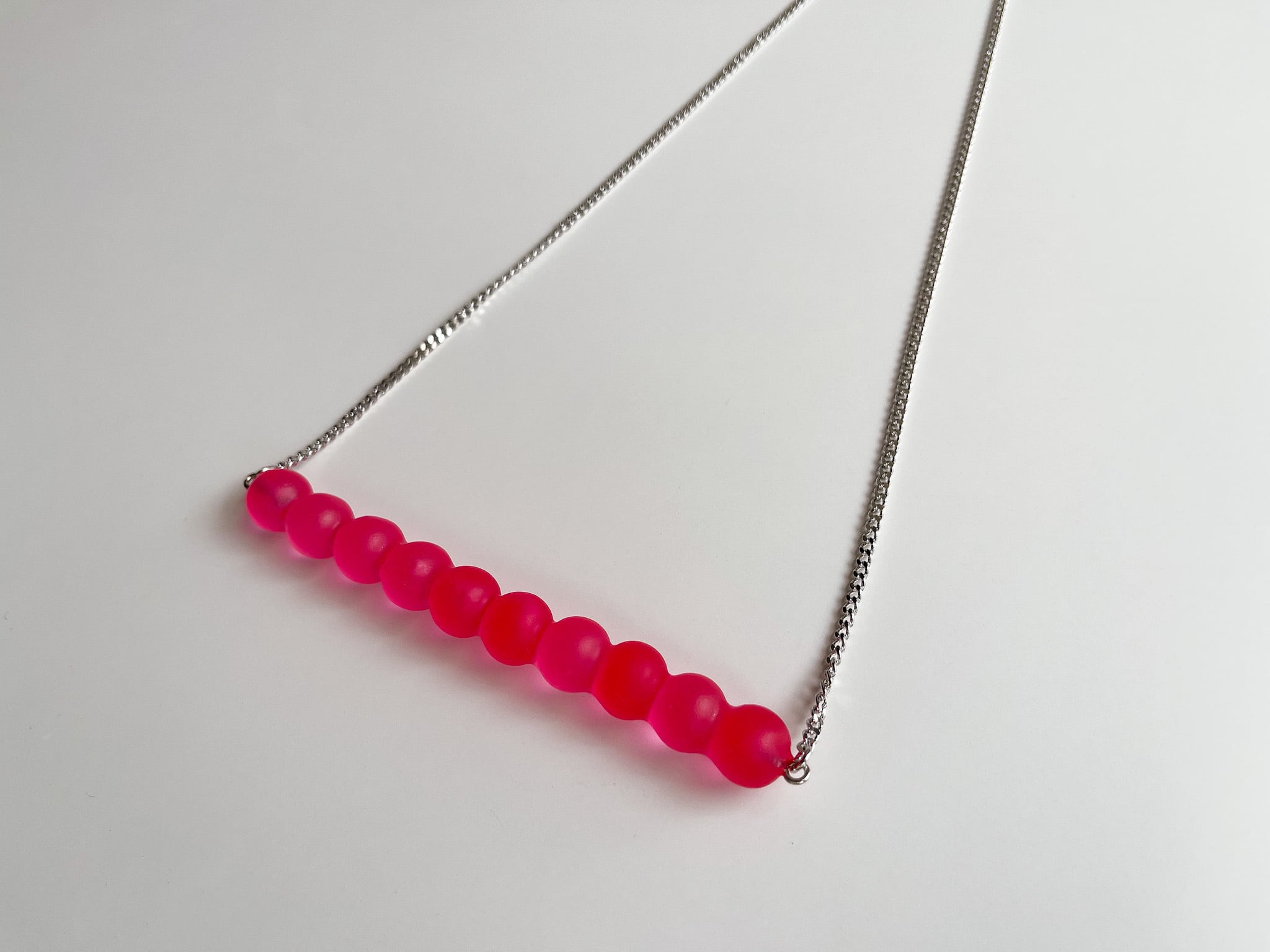 ビビットなピンクなので存在感のあるネックレスです。